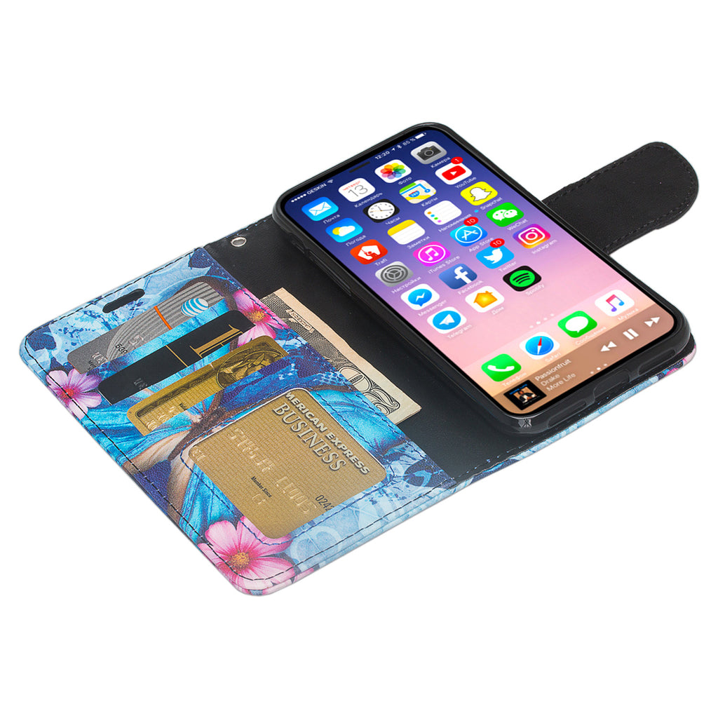 Apple iPhone | iPhone Ten Case, iPhone | iPhone Ten Wallet Case, Slim Flip Folio [Kickstand] Pu Leather Wallet Case with ID & Card Slots & Pocket + Wrist Strap -Blue Butterfly