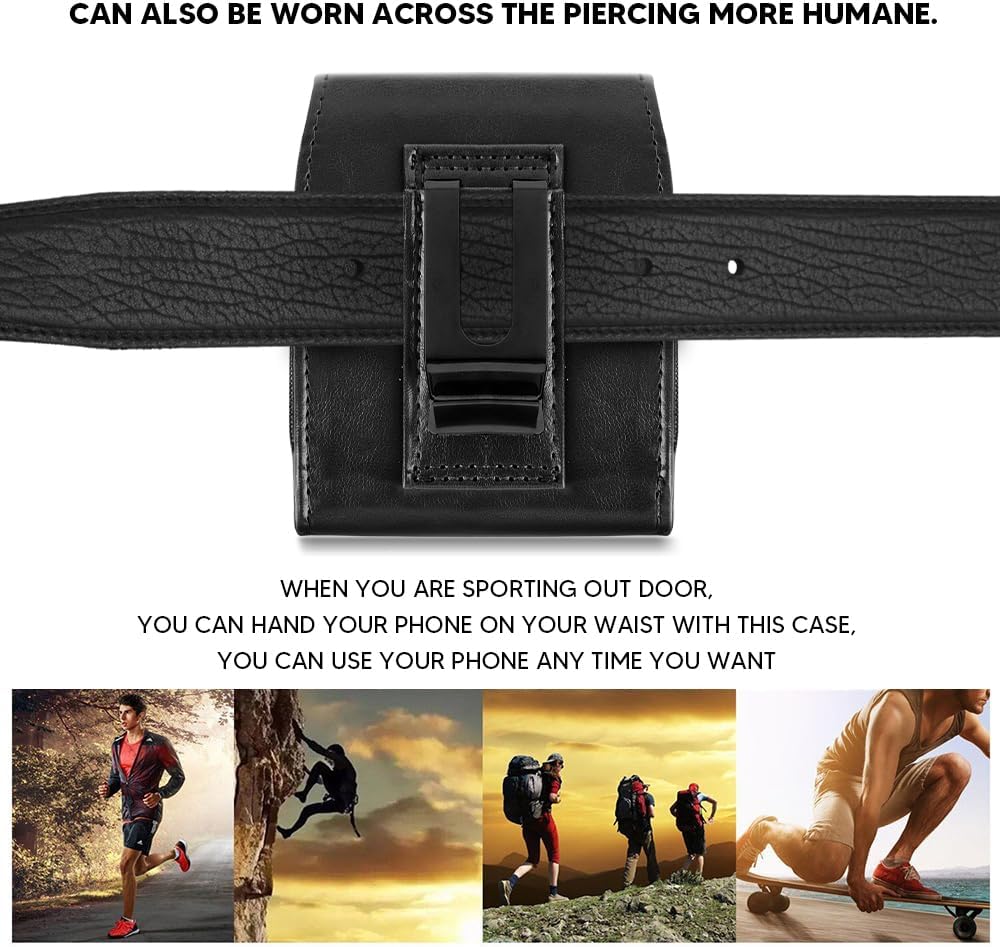 Case for Moto Razr+ Plus/Razr 2023 / Galaxy Z Flip 5 4 3 Phone Case Leather Vertical Pouch [Belt Loop, Metal Clip, Magnetic Closure] for Samsung Z Flip 5 5G, Z Flip3 - Black