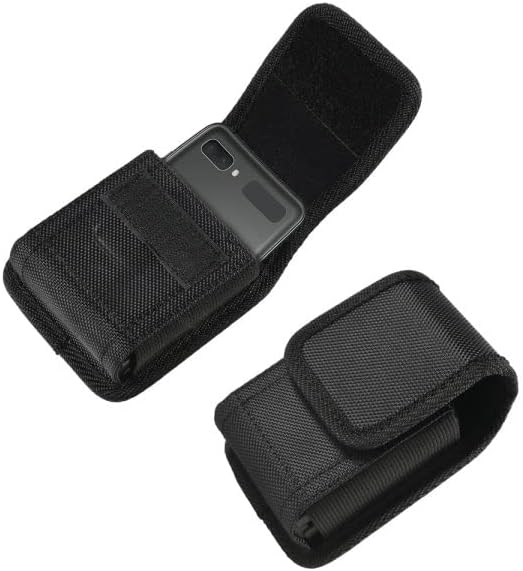 Case for Moto Razr+ Plus/Razr 2023/Galaxy Z Flip 5 4 3 Phone Case Black Balistic Nylon Leather Vertical Pouch [Belt Loop, Metal Clip] for Samsung Z Flip 5 5G, Z Flip4/3