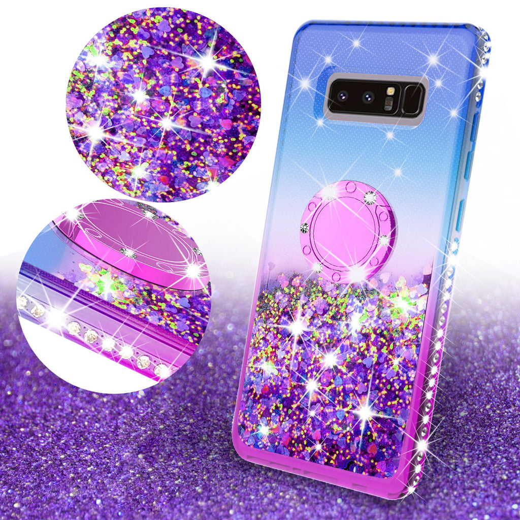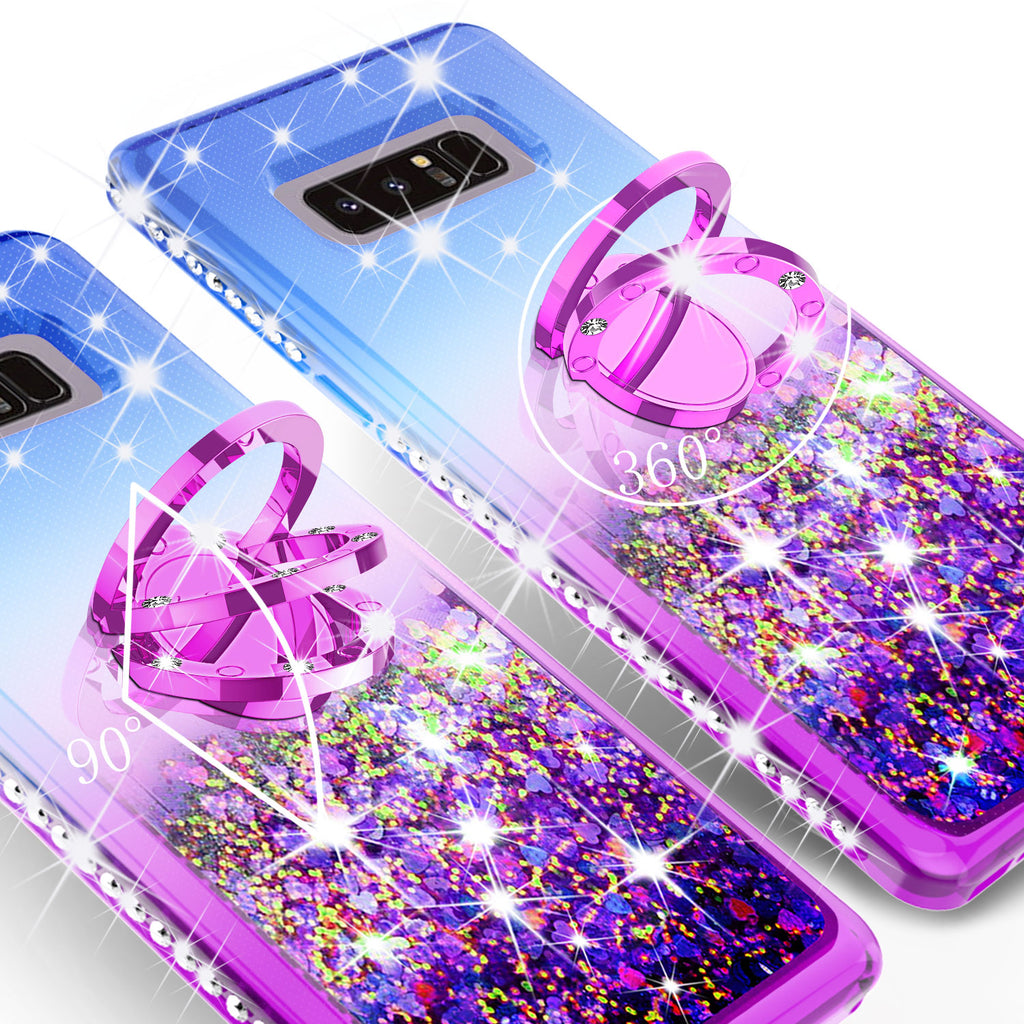 Glitter Phone Case Kickstand Compatible for Samsung Galaxy Note 8 Case,Ring Stand Liquid Floating Quicksand Bling Sparkle Protective Girls Women for Galaxy Note 8 - (Blue Gradient)