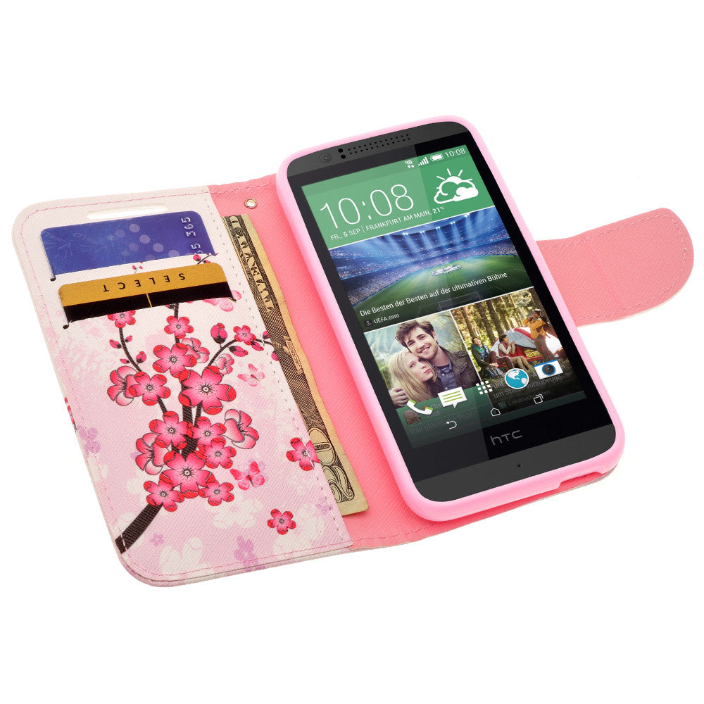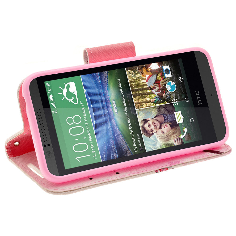 HTC Desire 510 Case, Wrist Strap Magnetic Fold[Kickstand] Pu Leather Wallet Case with ID & Credit Card Slots for HTC Desire 510 - Cherry Blossom
