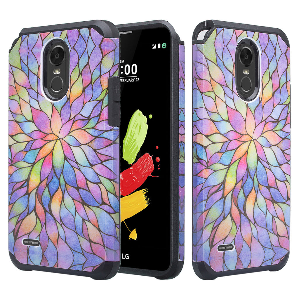 LG Stylo 3 Case, Stylo 3 Plus Dual Layered Shock Resistant Slim Hybrid Case for Stylo 3 / Stylo 3 Plus - Rainbow Flower