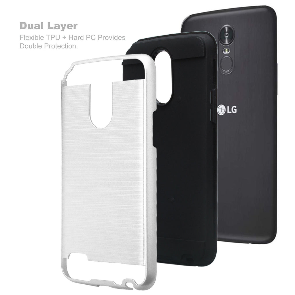 LG Stylo 3 Case, LG Stylo 3 Plus Slim Hybrid Dual Layer [Shock Resistant] Armor Case for Stylo 3 / Stylo 3 Plus - Brush Silver