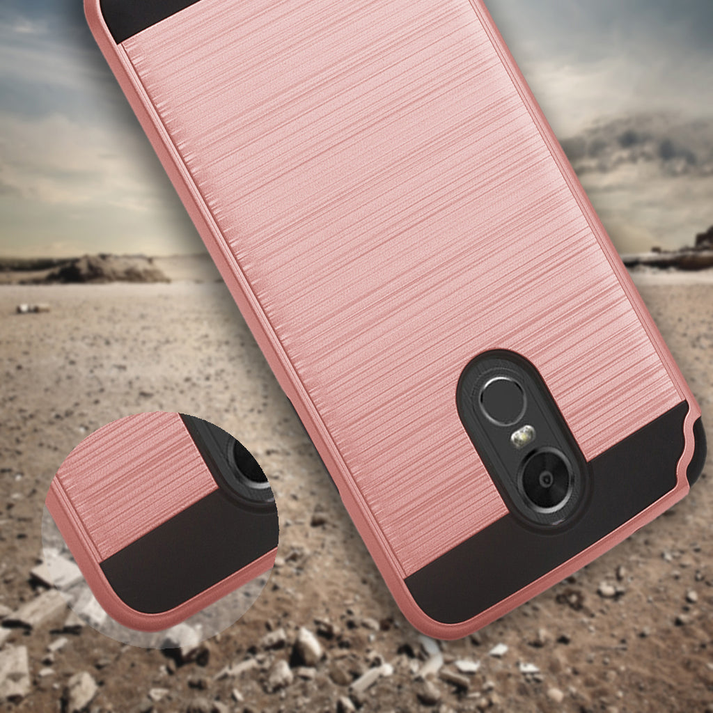 LG Stylo 3 Case, Slim [Shock/Impact Resistant] Hybrid Dual Layer Armor Defender Case Cover for LG Stylus 3 - Brush Rose Gold