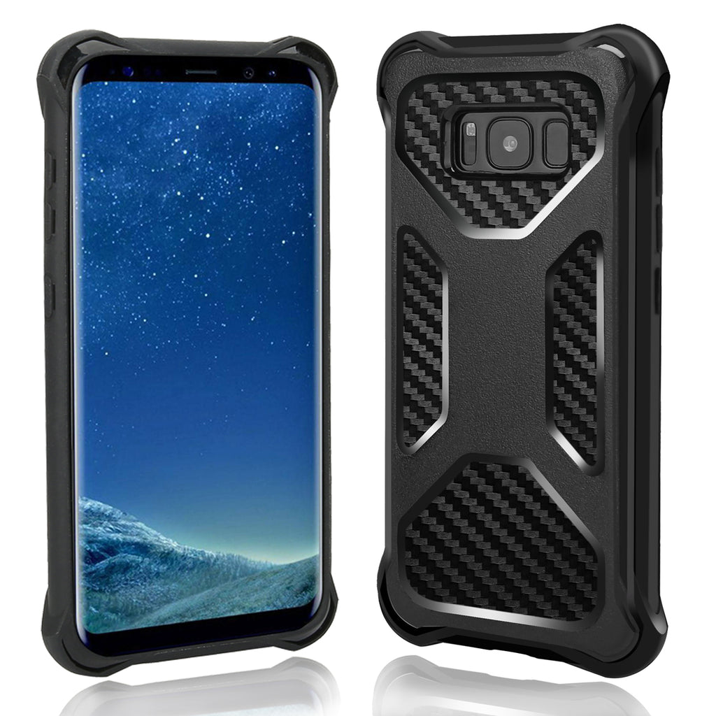 Samsung Galaxy Note 8 Case, Rugged Carbon Fiber Holster Combo Kickstand Clip Case Cover - Black