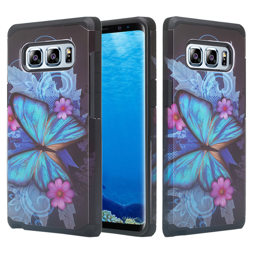 Samsung Galaxy Note 8 Case, [Include Temper Glass Screen Protector] Slim Hybrid Dual Layer [Shock Resistant] Case for Galaxy Note 8 - Blue Butterfly