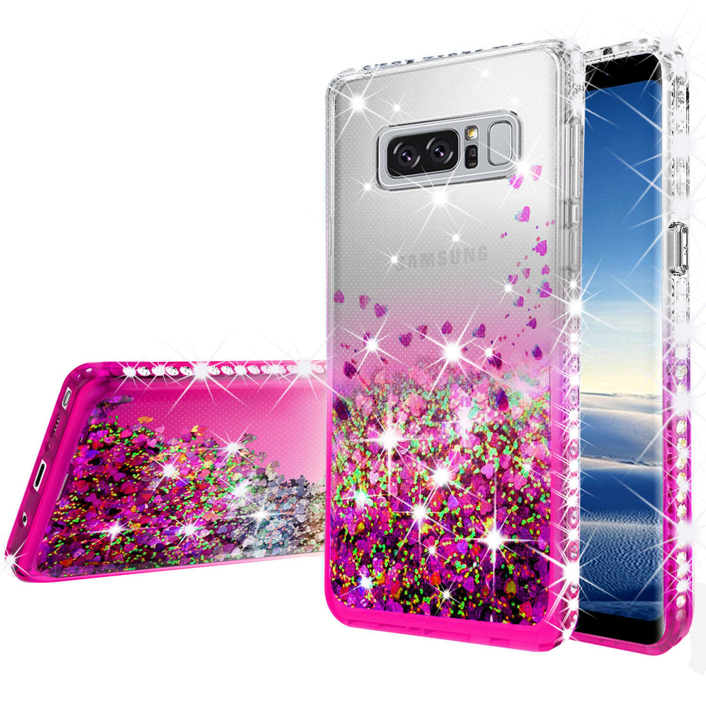 Samsung Galaxy Note 8 Case Liquid Glitter Phone Case Waterfall Floating Quicksand Bling Sparkle Cute Protective Girls Women Cover for Galaxy Note 8 - Hot Pink
