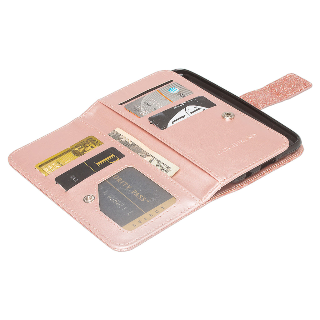LG Stylo 4 Case, Stylo 4 Plus, Q Stylus Glitter Faux Leather Flip Credit Card Holder Wrist Strap Shockproof Protective Wallet Case Clutch - Rose Gold